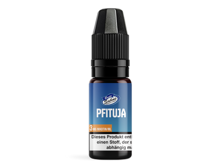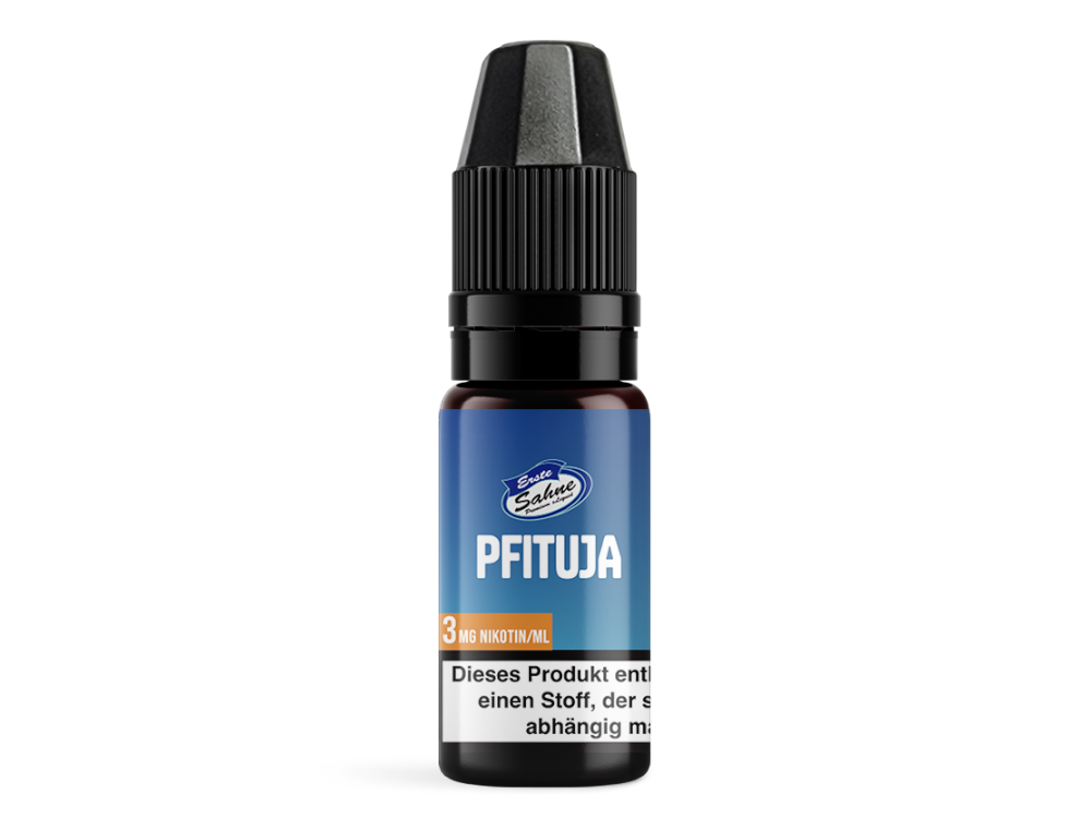 Die Liquids von der Marke Erste Sahne werden in Deutschland entwickelt und produziert. Verwenden Sie das Erste Sahne Liquid für Ihre E-Zigarette. Die 10 ml Flaschen mit Liquid sind in unterschiedlichen Nikotin-Stärken erhältlich. Wenn das Erste Sahne Liquid Pfituja gedampft wird, entfaltet sich der Geschmack von Pfirsichen und Maracujas. Jede Flasche enthält 10 ml Liquid in Ihrer gewählten Stärke.